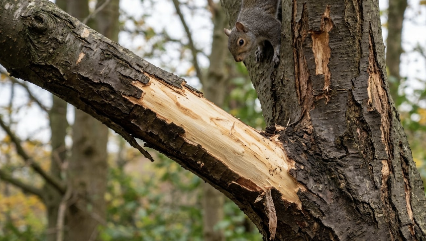 At this point, repeated behaviour begins to leave visible marks. Bark stripping, for example, often occurs when squirrels feed on sap beneath the bark of certain tree species. Because the behaviour is repeated over time, the damage can appear suddenly even though the squirrels have been active in the area for weeks.