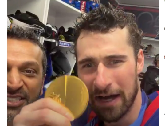 At first glance, the video didn’t appear to be a controversy. It appeared to be relief. With his gold medal gleaming beneath fluorescent lights, Dylan Larkin lifted his phone aloft in a brightly lighted locker room that was still buzzing from his Olympic success. Behind him, teammates chuckled. Something incoherent was yelled. It was noisy, untidy, and human. The kind of party that sportsmen long for. Then he saw a smiling Kash Patel behind him.
